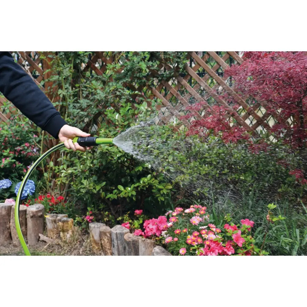 - Sprutmunstycke med ½ tums koppling: Ett justerbart sprutmunstycke för att rikta vattnet efter behov, perfekt för bevattning av trädgården.